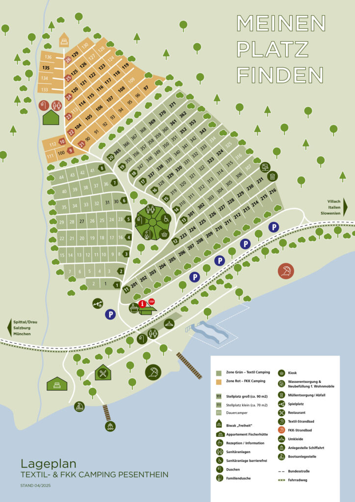 Am Ortsrand von Pesenthein, abseits jeden Trubels und der Hektik des Alltags, finden Camperfreunde hier den idealen Platz für die schönste Zeit im Jahr. FKK Anhänger, die es bevorzugen auf wohl natürlichste Art ihren Urlaub ohne Kleiderzwang zu erleben, genießen hier ein einzigartiges Idyll am Millstätter See. Ein eigener uneinsehbarer Campingplatz-Bereich, sowie eigene FKK-Sanitäranlagen sorgen für die nötige Privatsphäre. Das FKK-Strandbad befindet sich